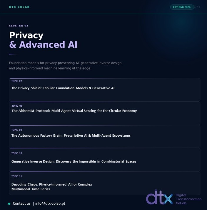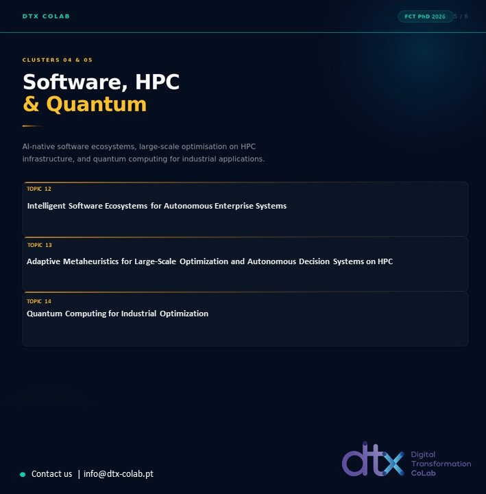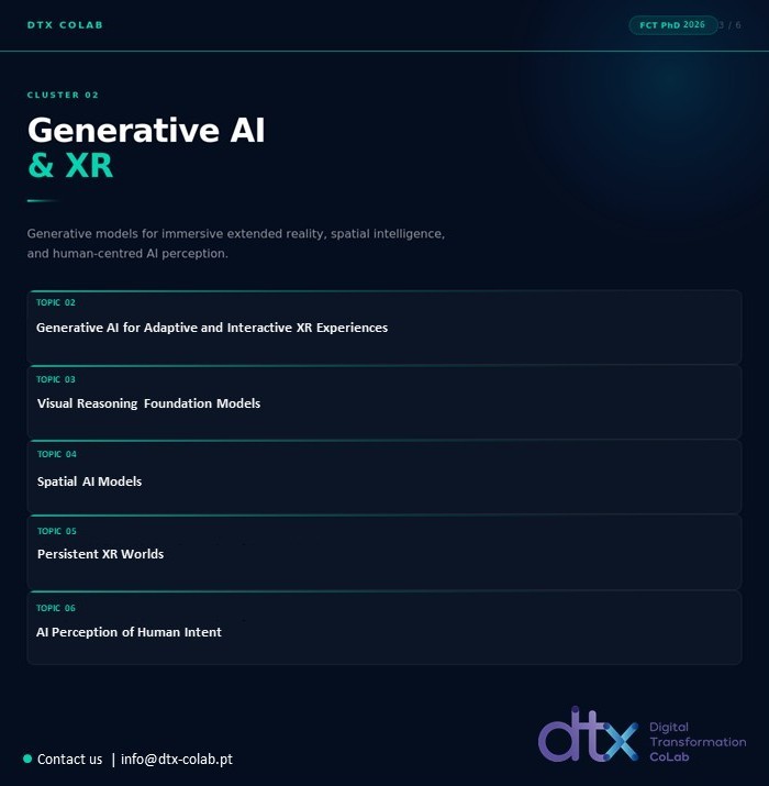 Neste âmbito, o DTx disponibiliza enquadramento científico, orientação especializada e integração em projetos de investigação aplicados, promovendo um ambiente colaborativo entre a academia, indústria e setor público. Os candidatos selecionados terão oportunidade de desenvolver investigação de elevado impacto, contribuindo para a inovação e para a transferência de conhecimento em áreas estratégicas da transformação digital.