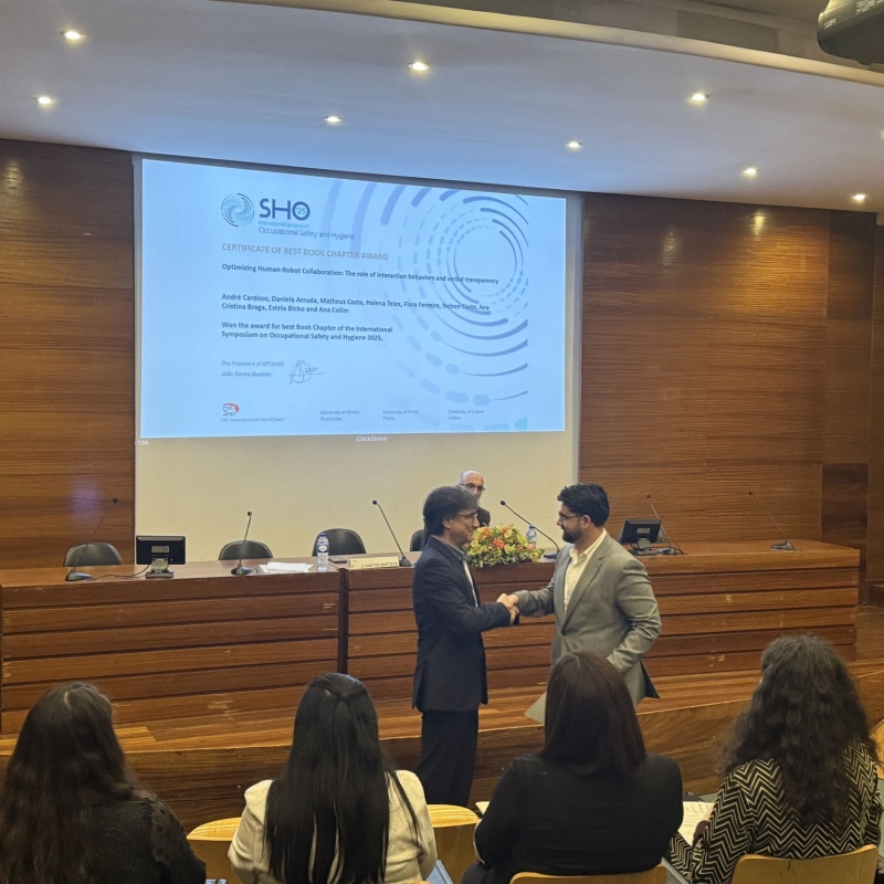 During the symposium, André Cardoso, a PhD student from the Universidade do Minho, hosted by DTx (with an MIT Portugal Program scholarship) presented a paper as part of the I-CATER project – Intelligent Robotic Coworker Assistant for Industrial Tasks with an Ergonomics Rationale. This article was honoured with the event’s Best Book Chapter award and will soon be published as a chapter in a book published by Springer.